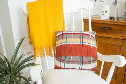 Knit a stylish cushion cover with a tartan effect to add a touch of cosy country charm to any room.