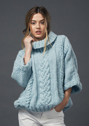Featuring drop shoulder sleeves and lovely cables this sweater is knitted in Brushed Fleece, a gorgeous blend of 65% wool, 30% alpaca and 5% polyamide. Designed by Quail Studio it has a fashionable oversized fit and makes for a comfy yet eye-catching wardrobe addition.