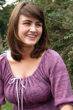 Worked seamlessly from the top down, an empire waist adds femininity and sophitication to this peasent-style top. The pattern includes two options for the bust shaping- detailed instructions are given on measuring your body and choosing the correct size.