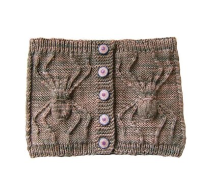 I've had this pattern in my head for a while. I shamelessly borrowed from Barbara Walker for the spider and added a snake to make this cowl a wearable piece of art called "Phobia". Wear the buttoned edge at the front, side, or even at the back of your neck. This is really quite stunning and has caused a stir at my yarn shop. The cowl measures about 18" around when the piece has the buttons sewn in place (the buttons are sewn through both layers of the cowl - there are no buttonholes, this cowl is slipped over your head).