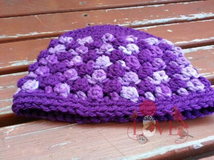 This fun hat uses the berry stitch!! Can be made with one color or 2 different ones!! It has a very nice texture to it!!