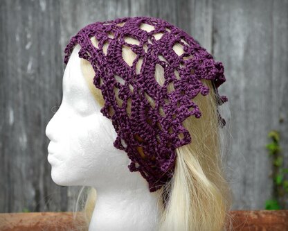 This is a crochet pattern for a pretty, lacy kerchief of head scarf designed by me. It features open shells and picot stitches for the main body and a worked-a-you-go edging. This kerchief definitely has a feminine flair! If done in white, it would make a wonderful headpiece for a wedding.
