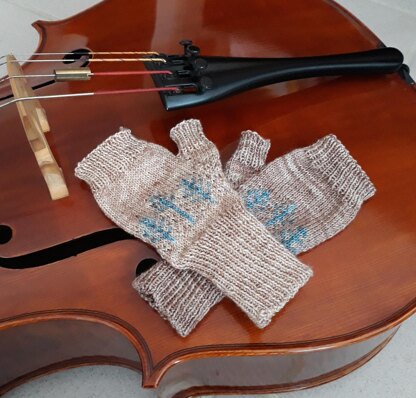 These fingerless mitts are worked in fingering (sock) yarn and features a stranded motif design of trees.