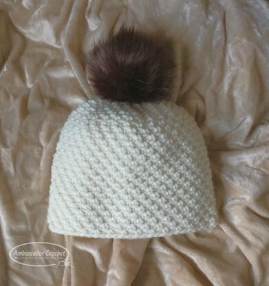 I created the Pine Grove Hat crochet pattern with the memory of cutting down our annual Christmas tree. It was always a fun time and wanted a hat to keep the memory alive. It has a fun texture without difficult stitches. If you know basic stitches, and can increase stitches you should have no problems with this pattern.