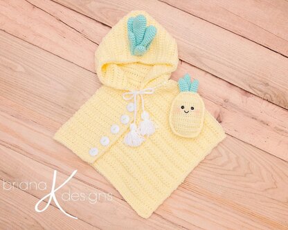 This great spring poncho is the fourth in the series of kids ponchos, perfect for all the kiddos in your life. It is a fun design for them and simple construction for you. Pattern also includes instructions for a buddy for your little one. There is also a Narwhal, Panda, and a Cactus in this series.
