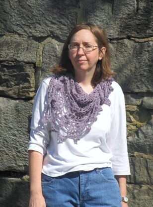 This is a top down, triangle shawl, using any weight of yarn, any size hook, any gauge, to make a shawl any size! Designer used Metamorphosis Yarn by A Verb for Keeping Warm (70% superwash merino, 30% silk, 4 ounces / 385 yards), colorway Hyacinth, 1 skein. Less than one skein was actually used, and a size I (5.5 mm) crochet hook.