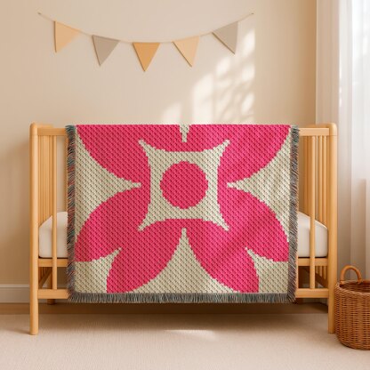 Bold Petal Burst blanket - designed using the C2C crochet technique. Pixel design - for lively throws, retro nursery decor, or artistic afghans.