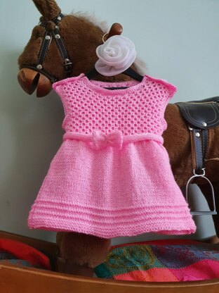 Any DK yarn can be used for this project. I used Super baby 100% acrylic and 3mm needles. Back and front of the dress are made separately flat and later sewn together.