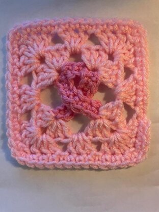 Designed with love and purpose, this pattern features a classic granny square base adorned with a delicate pink ribbon—symbolizing breast cancer awareness and support.
