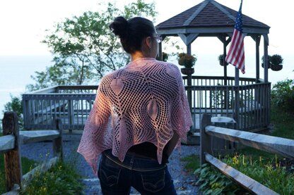 Pink Tourmaline is worked from the top down. Simple and sweet, this shawl features leaf motifs over an easy diagonal lace. Wrong side rows are all “resting” with the 3 edge stitches in garter and the remaining atitches purled.