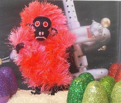 This is a knitting pattern for Pinky the Fluorescent Egg-Laying Space Orangutan.Pinky stands at 50cm tall and can be made jointed as seen here or as a slightly simpler non-jointed version.This pattern is available to buy here,on Etsy, Ebay or at madmonkeyknits.com. If you visit my website before 10th November you can have a chance to win this pattern as well as all the other patterns. Just enter my LAUNCH competition and guess how many balls of wool went into my homeknitted monkeytastic gorilla suit!