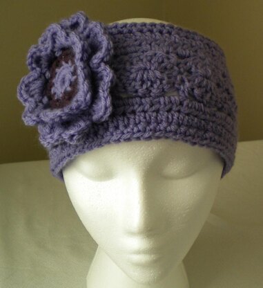 This crocheted headband has a pinwheel pattern with a pretty flower. It is featured in colors Damson and Mulberry, but can be made in so many color combinations. The pattern includes 2 sizes: S/M and M/L. Circum: 21" (23"). Crochet Hook: US H