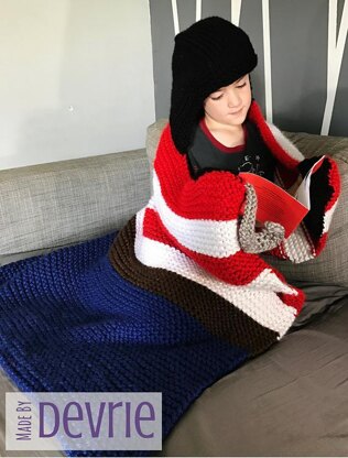 This fun blanket makes it easy to curl up on the couch with a good book or your favorite movie. Made with chunky yarn and some love you can create a wonderful blanket that will last for years to come. This pattern comes with detailed instructions and pictures. The sizes are customizable so you can create exactly what you need for your loved ones.