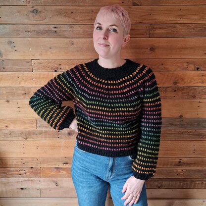 Top-down, seamless, and super customisable, the Pixels Sweater really has it all. Made from a simple and meditative stitch repeat, this raglan sweater is made in one piece with zero sewing together required. Whether you fancy a cosy pullover or a lightweight summer tee, this pattern is for you. Graded for sizes XS-5X with loads of hints and tips and endless length options (Pixels dress, anyone?) your finished make will be completely unique and perfect for you. This pattern uses DK yarn and a 4mm hook. Size / finished circumference / approx. meterage (55cm length). XS / 76 cm / 1695 m S / 90 cm / 1850 m M / 100 cm / 2005 m L / 113 cm / 2250 m XL / 123 cm / 2410 m 2X / 130 cm / 2505 m 3X / 149 cm / 2715 m 4X / 159 cm / 2915 m 5X / 168 cm / 2990 m