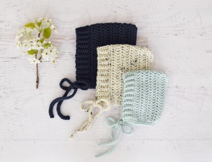 This pattern includes instructions to make the cutest baby bonnet in 5 different sizes, and it is gender nuetral. Just choose the perfect color!