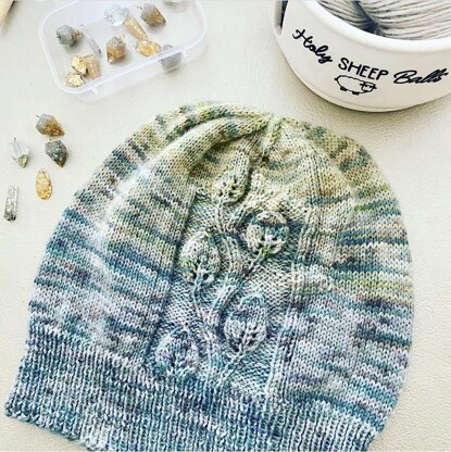 The Pixie Slouchy Beanie has a subtle mischievous flair. With a traveling vine/trellis lace detail, slouchy fit and spiral decrease, this hat is a style for the mystical and free-spirited! This hat has 5 sizes. It is a lightweight hat knit in fingering/sock yarn, and it has an option to make a folded brim for more warmth. It is the perfect hat for all pixies (ages and climates).