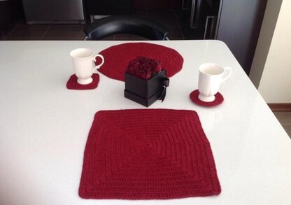 Placemat Set N 133 includes patterns for round and square placemats with matching coaster. It is perfect for many occasions from holiday table decor to housewarming gift.