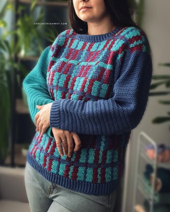 The Plaid and Simple Sweater is the perfect pattern to combine your favorite colors in a classic plaid design.