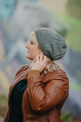 Plaids is a beautiful, slightly slouchy hat featuring intricate patterning created by means of Twisted Stitches. It's ideal for solid and semisolid DK skeins from your stash.