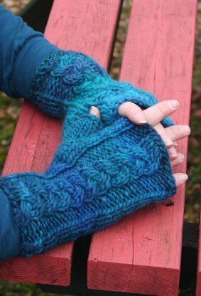 This is a pattern for a simple cable mitten, using left (front) and right Back) cables. It is knitted in the flat and sewn up the sides. It has a thumb.