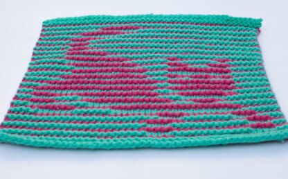 Illusion knitting is easy and effective. If you look from above you see stripes, viewed from an angle a cute playful kitty appears. This is a fun, colourful project to brighten up your home.