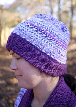 PLUMARIUS HAT radiates the same vivid plum hues as its' namesake cardigan, PLUMARIUS. Self-striping yarn becomes the star of the show and is an easy way to add visual interest.