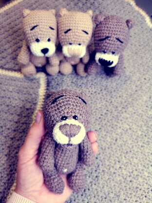 Bear measures 12cm/4.7inches when using the same materials as shown in the pattern.