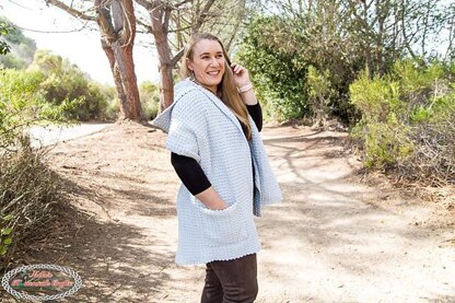 This stylish Pocket Shawl uses the suzette stitch and easily crocheted over a weekend. It also includes a detachable hoodie.