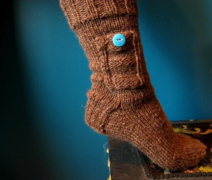 Make warm and woolly winter socks adorned with a side pocket and button closure because who doesn’t need a pocket on their sock sometimes? Quick to knit, this sock makes a great treat for yourself or gift for others.