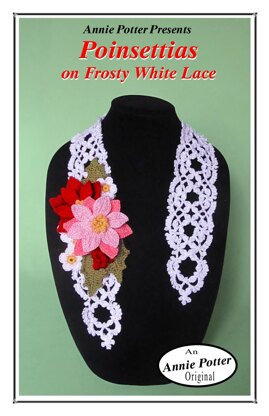 Poinsettias on Frosty White Lace A lovely scarf/necklace that’s perfect for the season. To crochet using size 3 thread or 2 strands of size 10 thread held together as one. Annie Potter Original
