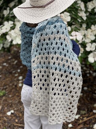 Great pattern play with stitch size to create a visual cascading waves in a wrap to hug close and keep you warm.