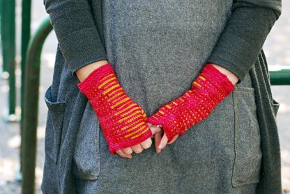 Size/finished measurements Small (medium/large): 6.5 (7.5)” circumference at wrist, 8 (8.5)” tall, from cast-on edge to top of hand. Mitts are shown in medium/large size.