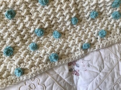 Tons of polka dots throughout the blanket for texture and style! One of a kind design and heirloom quality! Fits any decor in any room. Simple crochet stitches used.