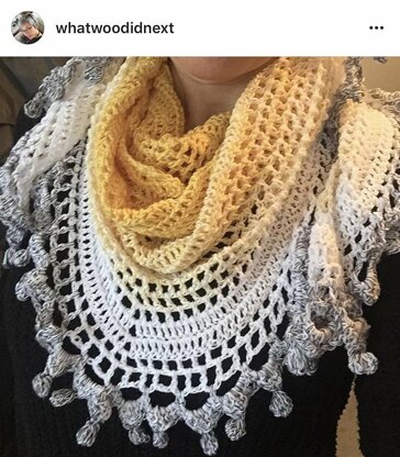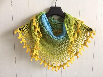 Crochet your own ‘Pom Pom Happiness Shawl’ using this crochet pattern in PDF format.