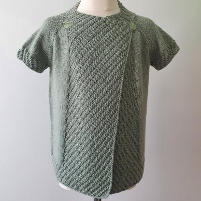 Pomona is a seamless raglan cardigan worked top down. It is knitted in stockinette stitch with diagonal rib stitch pattern at the collar, hem and cuffs. The pattern is written in 7 sizes from which the 4 child sizes come with optional short shaping at the collar, raglan and hem. The pattern offers a short and a long version too for the sleeves.