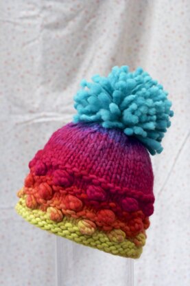 One ball of Freia Fine Handpaints Super Bulky Yarn knits up quick to make this fun toasty hat! An extra layer of warmth is provided around the ears with the placement of staggered bobbles (or tufts!). Designed by Holli Yeoh.