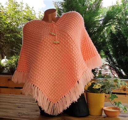 It works very quickly and is very easy to do . Is adapted to any size . Is perfect for any seasons. Crochet : 7.00 mm for the two rectangles and 5.00 mm – forthe collar, to join the rectangles and at the bottom at the poncho Yarn : Nako Mohair delicate and I put in 2 strainds