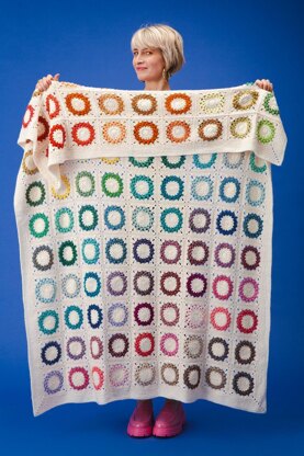 MATERIALS● Scheepjes Stone Washed, 78% cotton/22% acrylic, 50g/130m/142yds Yarn A: Moon Stone 801 x 20 balls ● Scheepjes Stone Washed & River Washed Colour Pack, 78% cotton/22% acrylic, 10g/26m/28yds Yarn B: Colour Pack x 1 (58 balls of yarn) ● 4mm hook