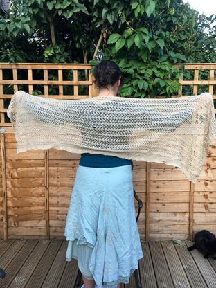 This lightweight lacy wrap is ideal for cooler summer and autumn evenings. The simple lace repeat is easy to commit to memory, making this an ideal project for those just starting to learn lace knitting. The silk and merino yarn adds a wonderful touch of luxury. Despite the lightweight yarn, the wrap knits up quickly.