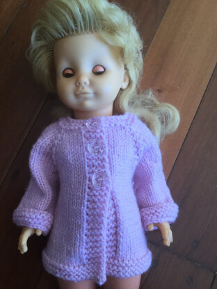 A simple little seamless (or almost seamless) cardigan designed to fit gorgeous little 16 inch tall Waldorf style doll.