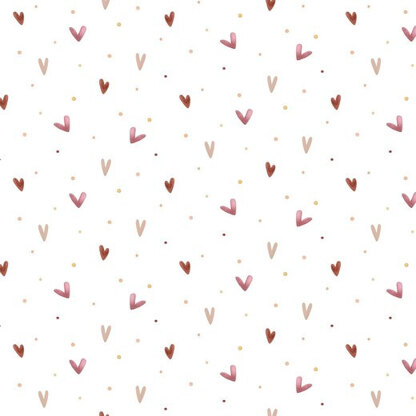Beautiful digitally printed 'Hearts' design in Gots Organic and Oeko-tex (class 1) single jersey. Weighing 200gsm, this fabric is a lovely weight for dresses, tops and Children’s clothes.