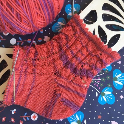 Here you get nice summer socks with a cute pattern on! It is recommended to use bigger needle size (2,5 mm) from size 39 on (as written in the instruction). Have fun!