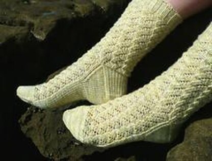 A top-down sock in four sizes (XS/S/M/L) featuring an easy-to-knit openwork pattern that captures the fanciful play of light found at its namesake peninsula refuge. The faux-cable motif knits up in a snap and looks equally well when worked in toe-up construction; this sock is a portable and entertaining travel project.