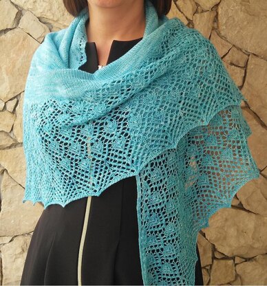 Porto Santo shawl is worked down and out from the center of the top edge, and it can be worked in two sizes.  Shaping is done by working increases at the beginning and ending of each row and around the center stitch.