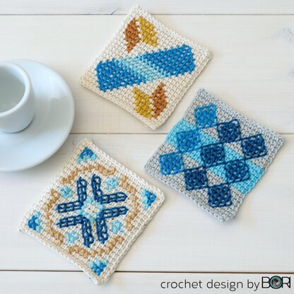I love portuguese ceramic tiles. I try to catch its style, colors, and patterns. It is so exciting to mix tunisian crochet with cross stitch techniques. Follow the instructions and learn with me this really easy technique!