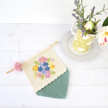 A delightful flower and nature inspired wall hanging to brighten up your home. Inspired by weaving, this decoration is very textured and would look great in any room. The pattern includes written instructions, lots of photos and step by step tutorials to guide you through making it.