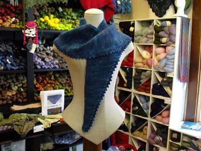 Tunisian simple stitch worked in subtly variegated shades of blue and purple combines with a picot edge to make this light and romantic scarf, which can also be worn as a shawlette.