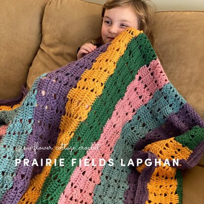 The Prairie Fields Afghan really does remind me of Kansas fields with the tall native grasses swaying, which I feel is represented in the offset fans in the blanket. The straight columns represent the corn fields, in my mind.