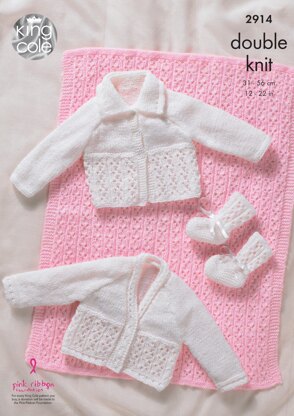 Pram Cover, Cardigans and Bootees in King Cole DK - 2914 - Downloadable PDF