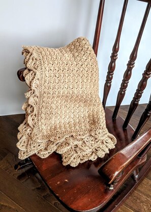 A fun repeating stitch pattern and a delicate shell edging give this sweet baby blanket a unique and elegant look, perfect for wrapping up your precious bundle. Use a favorite color of super soft baby weight yarn and you will have crocheted an adored baby gift.